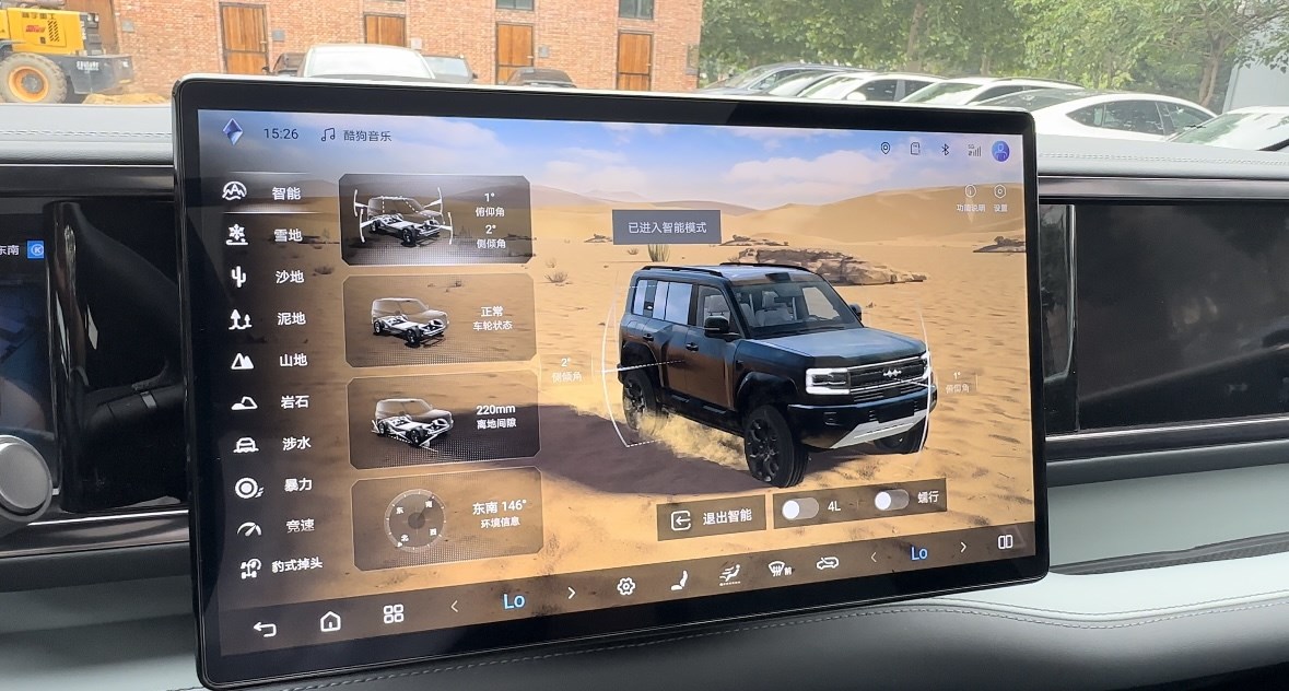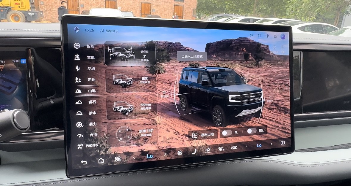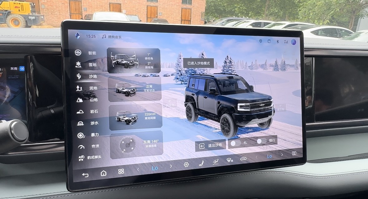 在駕駛模式方面,新車擁有多種模式,智能、雪地、沙地、泥地、山地、巖石等等,每一次駕駛模式的切換,不僅僅是轉(zhuǎn)向、油門上的變化,屏幕上也會進入到相應(yīng)的情景模式當(dāng)中,彷佛如臨其境一般,情緒價值直接拉滿。