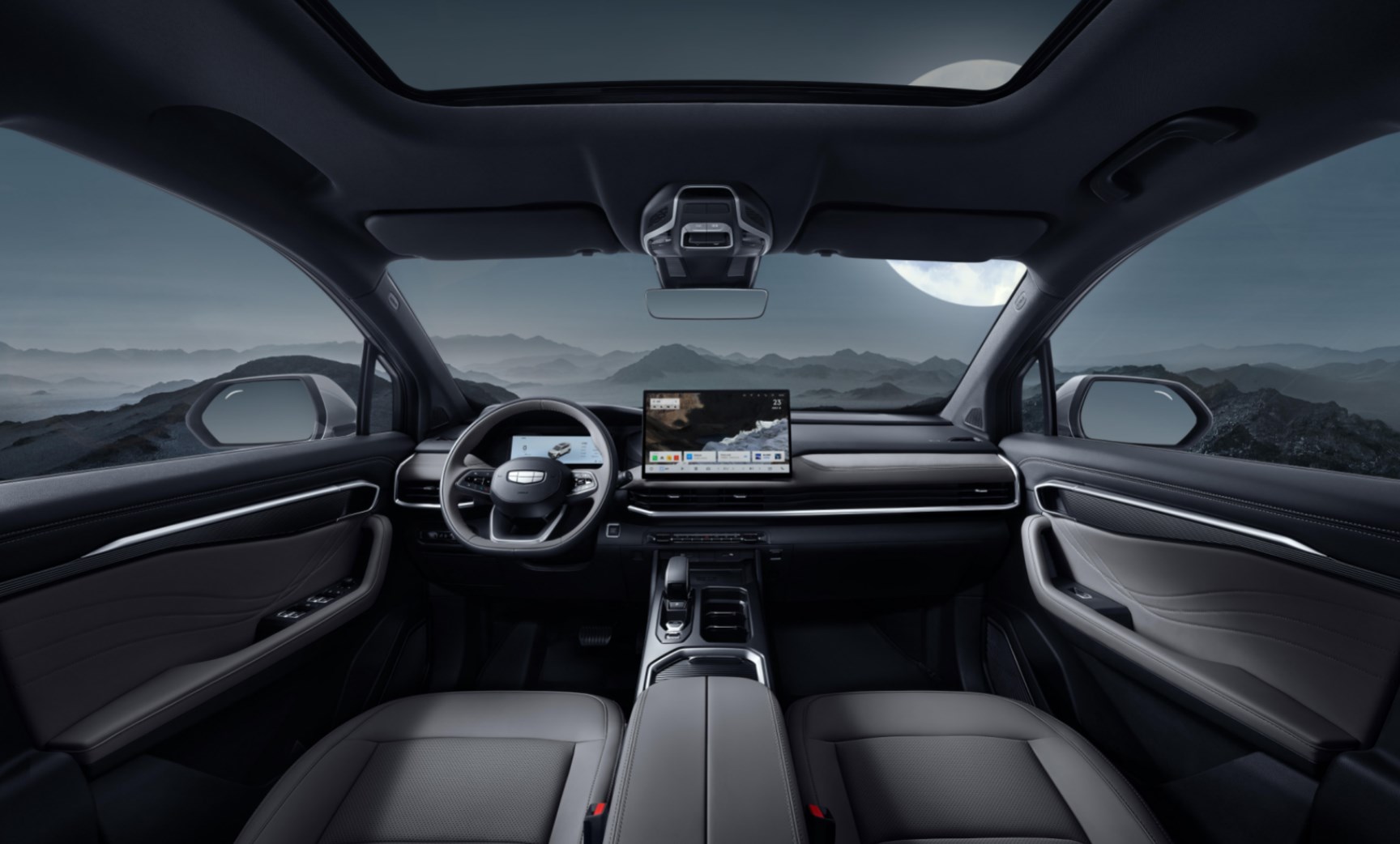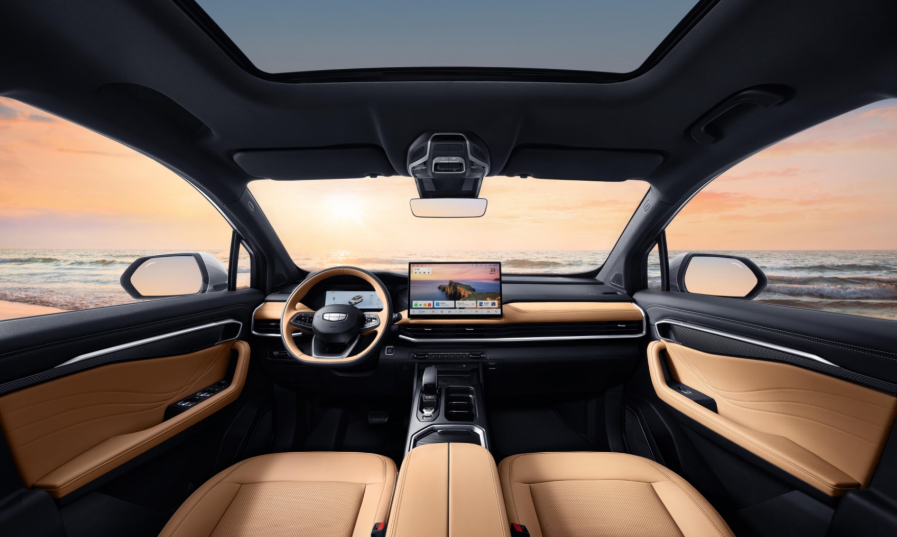 新車尾部造型方正,使用了貫穿式的尾燈,下方則刻印著吉利汽車的英文字母,進一步加強辨識度,底部雙邊共兩出的排氣布局還加上了濃郁的鍍鉻裝飾,進一步加強時尚氣息。